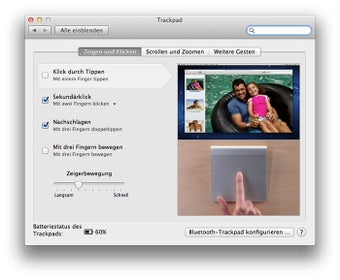 Apple bringt mit OS X Lion die Bedienung seines Betriebssystems näher an die mobile Welt von iOS mit iPhone, iPad & Co. Profiteure der neuen Ausrichtung sind besonders Nutzer von Trackpads: Mit leicht lernbaren Fingerübungen wechselt man zwischen mehreren Anwendungen. Mit der Mission Control genannten Thumbnail-Ansicht verschafft man sich beispielsweise mit einem Dreifinger-Wisch nach oben einen Überblick über alle geöffneten Programme.